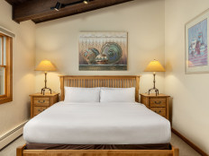With distinctly Western décor, Top of the Village Trails 206 offers a spacious and comfortable mountain retreat for up to six people. Located on the second floor, this 1,080-square-foot residence provides a sense of seclusion with views of Snowmass Mountain. The living room features a classic brick gas fireplace and a sofa bed. The master bedroom includes a king bed and a private bathroom, while the guest bedroom has two twin beds, with a second bathroom across the hall. Enjoy a fully equipped kitchen, a private deck with a gas grill, washer/dryer and easy access to an on-call shuttle service, hot tubs, and a heated swimming pool. More...