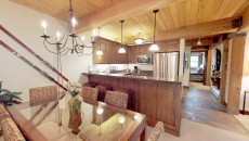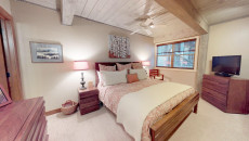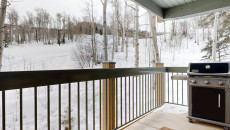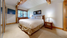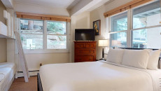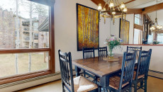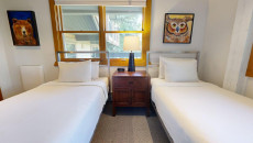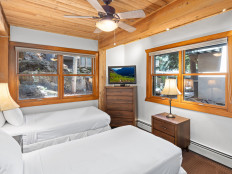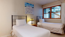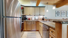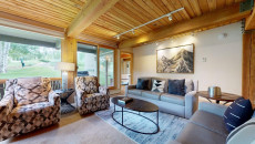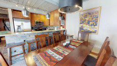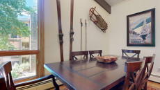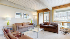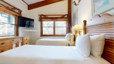 Top of the Village Slope 210, located on the ground floor, offers 1,800 square feet of bright and spacious living, perfect for hosting a large family or group of friends. The mountain rustic décor complements the slopeside location, which overlooks a serene glade of Aspen trees and a lush green lawn in summer. The residence features four bedrooms and four bathrooms, including a master bedroom with a king bed and private bathroom. The second and third bedrooms each have two twin beds, with the third bedroom also offering a private bathroom. The fourth bedroom features a king bed and private bathroom. The living room, equipped with a stereo system and flat screen TV, provides a cozy space to relax. The fully equipped kitchen includes granite countertops and a dining table that seats eight. More...