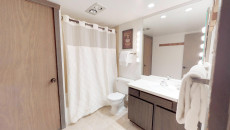 Top of the Village Summit 304, located on the top floor, offers 1,500 square feet of spacious living with stunning views of the ski slopes. The vaulted ceiling with pine beams adds an airy feel to the living room, which is complemented by a mountain-inspired décor. The master bedroom features a king bed, a walk-in closet, and a private bathroom. The second bedroom has custom-made king bunk beds and a private bathroom, while the third bedroom includes two twin beds and access to a hallway bathroom. The living room, centered around a mountain stone gas fireplace, is perfect for relaxing after a day of skiing. The fully equipped kitchen boasts granite countertops, and the private deck comes with a gas grill. Additional amenities include ceiling fans and a washer and dryer. More...