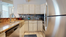 Top of the Village Trails 108 features a newly renovated kitchen with stainless steel appliances and granite counters, ideal for preparing family meals. The dining room accommodates 4-6 people, with additional seating at the breakfast bar. The master bedroom includes a king bed and private bath, while the guest room has two twin beds with a bath across the hall. A fold-out sofa bed in the living room provides extra sleeping space. More...