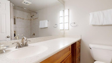 Top of the Village Trails 109, located on the ground floor, offers 1,800 square feet of spacious comfort with breathtaking views of Snowmass Mountain. This residence features four bedrooms and three bathrooms, including a master bedroom with a king bed and an en suite bathroom. The guest master also has a king bed, while the two additional bedrooms each have twin beds. The living room boasts a cozy gas fireplace and ample space for relaxation. The fully equipped kitchen includes granite countertops, and the residence has a private deck with a gas grill. Additional conveniences include a washer and dryer. More...