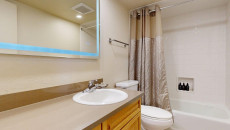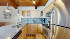 Top of the Village Slope 308, located on the middle floor, offers 1,080 square feet of comfortable living space with convenient access to the slopes of Snowmass Mountain. The master bedroom features a king-size bed, while the guest bedroom includes a king bed and twin bunk beds. The living room includes a sleeper sofa for additional sleeping arrangements. The fully equipped kitchen features granite countertops, and the residence includes a private deck with a gas grill. Additional amenities include a washer and dryer, gas fireplace, and ceiling fans. More...