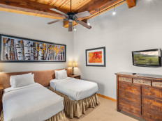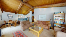 The first impression upon entering Top of the Village Trails 306 is the bright and airy ambiance created by the vaulted ceilings, a feature of this top-floor residence. The eclectic artwork and light-colored furnishings enhance the open feel of the living room. Situated on the top floor of the Trails building, this residence offers a sense of seclusion with the slopes of Snowmass Mountain as the only reminder of nearby civilization. This 1,080-square-foot residence includes two bedrooms and two bathrooms. The master bedroom features a king bed and a private bathroom, while the guest bedroom has two twin beds (which can be combined into one bed) and built-in bunk beds, with a hallway bathroom nearby. The living room, equipped with a sleeper sofa, has a gas fireplace, washer/dryer and is complemented by a fully equipped kitchen. More...