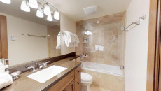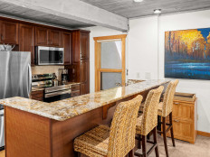 Top of the Village Summit 107, located on the ground floor, offers 1,080 square feet of convenient slope-side lodging. The unit features a master bedroom with a king-size bed and a guest bedroom with two twin beds that can be combined into a king. The fully equipped kitchen boasts stainless steel appliances, granite counters, and a dining table for six with additional bar stools. Enjoy the new stone hearth fireplace and relax on the private patio with a gas grill, with ski-in/ski-out access right to your door. Additional amenities include an in-unit washer and dryer and access to the outdoor heated pool, hot tubs, exercise room, and sauna. More...