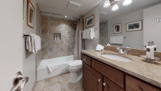 Top of the Village Summit 306 offers 1,080 square feet of comfortable living space. The master bedroom features a king-size bed and an en suite bathroom, while the guest bedroom includes two twin beds that can be converted into a king upon request and a set of twin bunk beds. The fully equipped kitchen includes granite countertops, and the residence also features a private deck with a gas grill. Additional amenities include a washer and dryer, gas fireplace, and ceiling fans. More...