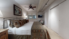 Top of the Village Slope 305 offers a perfect blend of comfort and style with its retro décor and stunning ski run views. Located on the third floor, this 1,080-square-foot condo features two bedrooms and two bathrooms, including a master bedroom with a king bed and a guest bedroom with two twin beds. The living room, with its sofa bed and gas fireplace, provides a cozy retreat after a day on the slopes. Enjoy the convenience of a fully equipped kitchen, a private deck with a gas grill, and easy access to the amenities of Top of the Village, including multiple hot tubs, a heated swimming pool, and an on-call shuttle service. More...