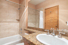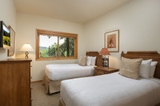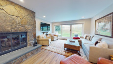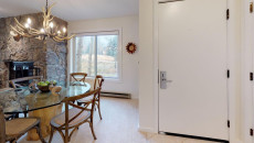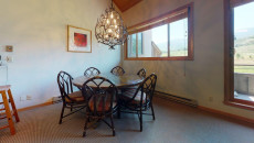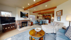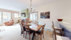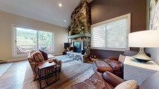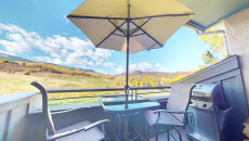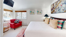 Villas 1625 is a newly remodeled two-bedroom, two-bath villa spanning 1,100 square feet, offering a private setting with stunning views of Mt. Daly and Snowmass Golf Course. The master bedroom features a king-sized bed and an en suite bathroom with granite finishes. The guest bedroom includes two twin beds and access to a newly renovated bathroom. The open living area includes a cozy family room with a sleeper sofa and a large stone fireplace, and a gourmet kitchen with granite counters and a bar area. The dining table seats eight, and the private balcony provides additional outdoor space. More...