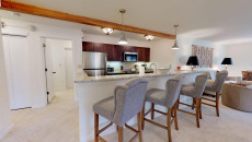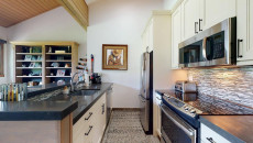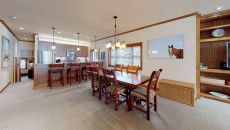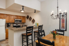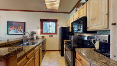 Villas 1636 is a recently updated two-bedroom, two-bath unit with an open, social floor plan and vaulted ceilings that enhance its spacious and warm atmosphere. The dining room and adjoining gourmet kitchen, featuring stainless steel appliances and granite counters, are perfect for large meals. This unit includes a new washer and dryer for convenience. Enjoy stunning mountain views from the balcony overlooking the golf course, or relax in the family room by the natural stone, wood-burning fireplace. The master bedroom features a queen-sized bed and a private bath with beautiful tile and stone finishes. The guest bedroom has two twin beds, and a queen-sized pull-out sofa bed in the living room offers additional sleeping space. More...