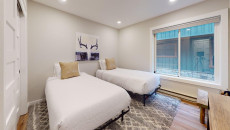 Villas 1536 is a recently renovated, modern Scandinavian-style unit that blends contemporary living with mountain charm. Located on the third floor with elevator access, this 860-square-foot residence features 2 bedrooms and 2 bathrooms. The master bedroom includes a king bed and a private bathroom, while the guest bedroom offers two twin beds and access to a hallway bathroom. The spacious living room has high ceilings and large windows that showcase panoramic mountain views. It also includes a sleeper sofa for additional guests. The fully equipped kitchen features stainless steel appliances and ample seating. Additional amenities include a wood-burning fireplace with provided firewood, a private deck with a gas grill, and a washer and dryer. More...