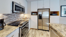 Villas 1204 is a spacious second-floor residence with 876 square feet. The master bedroom includes a king-size bed, while the living room features a sofa for additional seating. The fully equipped kitchen boasts granite countertops, and there is a dining area for meals. Additional conveniences include an in-unit washer and dryer, making this residence a comfortable and practical choice for travelers. More...