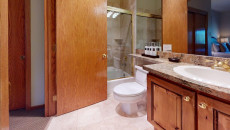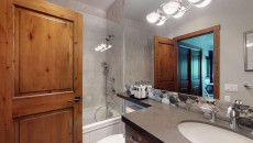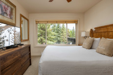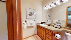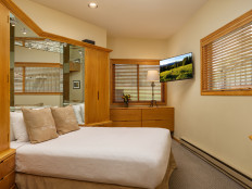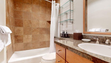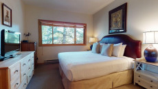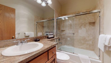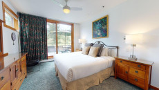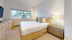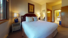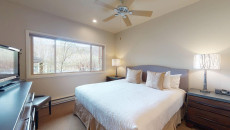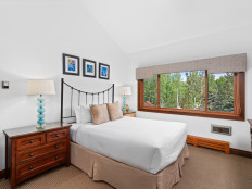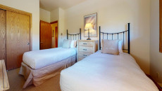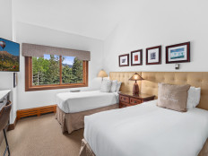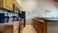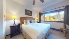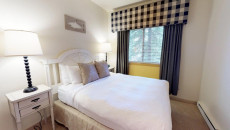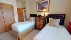 Villas 1422, a second-floor unit with elevator access, offers 2 bedrooms and 2 bathrooms. The master bedroom features a king bed, while the guest bedroom also includes a king bed. The living room boasts panoramic mountain views from both the interior and the private deck, which includes a gas grill. The residence also features a fully equipped kitchen with granite countertops, a wood-burning fireplace with provided firewood, and an individual ski storage closet. More...