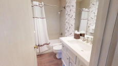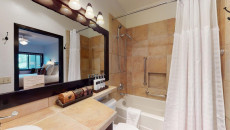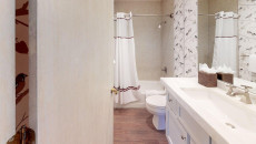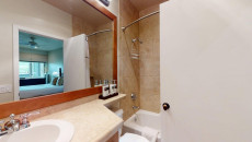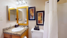 Villas 1206, located on the second floor, offers 705 square feet of comfortable living space. The master bedroom features a king-size bed, while the living room includes a sofa bed for extra sleeping arrangements. The residence boasts a fully equipped kitchen with granite countertops, a dining area, and a cozy fireplace. Additional conveniences include an in-unit washer and dryer, enhancing the comfort and practicality of your stay. More...