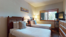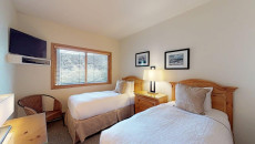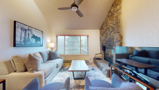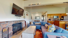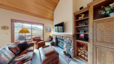Villas 1633 is a two-bedroom, two-bath condominium. The top-floor retreat features an open floor plan with a kitchen, a living area with a sleeper sofa, and a large balcony with mountain views. The first bedroom has a queen bed, while the second bedroom has two twin beds. Enjoy high vaulted ceilings, cozy furnishings, and a wood-burning fireplace, making this a perfect escape for relaxation and adventure. More...