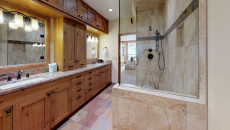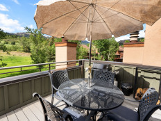 Villas 1637 is a recently updated two-bedroom, two-bath unit featuring an open, social floor plan with large vaulted ceilings that enhance its spacious and inviting feel. The dining room and adjoining gourmet kitchen, equipped with stainless steel appliances and granite counters, are ideal for hosting meals. This unit also includes a new washer and dryer for added convenience. Enjoy stunning mountain views from the balcony overlooking the golf course, or cozy up in the family room by the natural stone, wood-burning fireplace. The master bedroom features a king-sized bed and a private bath with beautiful tile and stone finishes, while the guest bedroom offers two twin beds. More...