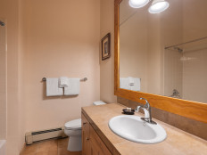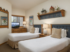 Villas 1524, a second-floor unit with elevator access, features 2 bedrooms and 2 bathrooms. The master bedroom includes a king bed, while the guest bedroom offers 2 twin beds. The living room, with its pull-out sofa, provides panoramic mountain views from both the interior and the private deck, which includes a gas grill. The residence also features a fully equipped kitchen with granite countertops, a wood-burning fireplace with provided firewood, and an individual ski storage closet. More...