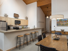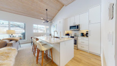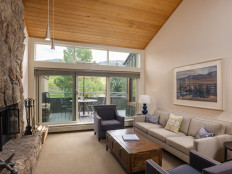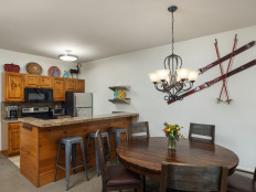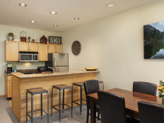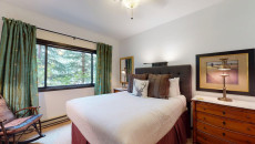 Villas 1515 is a cozy, cottage-like retreat that combines modern simplicity with mountain charm. The spacious living room features high ceilings and large windows that provide stunning mountain views and ample natural light. The fully equipped kitchen, with updated flooring and bar stools, includes stainless steel appliances and offers plenty of seating. After a day of outdoor activities, relax by the wood-burning fireplace. The unit also includes a washer and dryer. It is an ideal retreat for couples or a small family, with a master suite that has a private bath and a guest bedroom with two twin beds. More...
