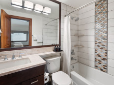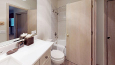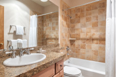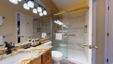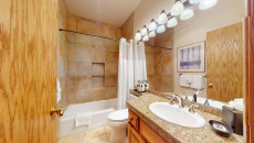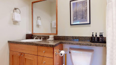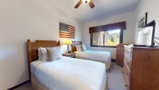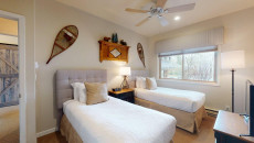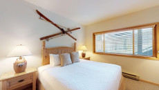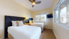 Villas 1205 is a spacious second-floor residence with 876 square feet. The master bedroom features a king bed with built-in bunk beds, while the living room includes a full-size sofa bed and an electric fireplace. The fully equipped kitchen boasts granite countertops, and there is an in-unit washer and dryer. Additional amenities include ceiling fans and a dedicated ski storage closet, providing a comfortable and convenient stay. More...