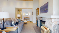Villas 1527, a remodeled second-floor unit with elevator access, features 2 bedrooms and 2 full bathrooms with large showers. The master bedroom includes a king bed, while the guest bedroom offers a queen bed. The living room provides panoramic mountain views from both the interior and the private deck, which is equipped with a gas grill. Additional amenities include a fully equipped kitchen with granite countertops, a wood-burning fireplace with provided firewood, and an individual ski storage closet. More...