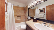 Villas 1532, located on the third floor with elevator access, offers 995 square feet of space. This two-bedroom, two-bathroom unit features a master bedroom with a king bed, a private bathroom, and a guest bedroom with two twin beds and a hallway bathroom. The living room includes a comfortable pull-out sofa bed, vaulted ceilings, and panoramic mountain views from both the interior and the private deck, which comes with a gas grill. The fully equipped kitchen features granite countertops, and the residence also includes a wood-burning fireplace with provided firewood and an individual ski storage closet. More...