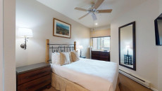 Villas 1201, situated on the second floor, offers 876 square feet of inviting living space. The master bedroom features a king bed with standard bedding, while the living room includes a sofa bed and a cozy fireplace. The residence includes a fully equipped kitchen with granite countertops, a washer and dryer, and a dedicated ski storage closet. Additional comforts are provided by ceiling fans and convenient amenities. More...