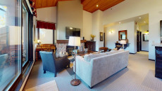 Villas 1436 is a luxurious top-floor condominium offering an ideal mountain escape. This spacious 1,800 sq. ft. duplex villa features three bedrooms and three and a half bathrooms. The master bedroom has an en-suite bathroom, while the two guest bedrooms, located on the second floor, each have their own en-suite bathrooms and private entrance. The open-concept living room, with vaulted ceilings and large windows, provides spectacular mountain views and is anchored by a wood-burning fireplace. The gourmet kitchen and large dining area are perfect for cooking and entertaining. Enjoy sunsets from the oversized private deck with a gas grill. The unit also includes a washer and dryer. More...