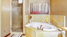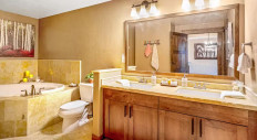 Trailhead Lodge 3110 is a luxurious one bedroom condo with recent upgrades including new tile flooring, carpeting and new furnishings. It features a fully-equipped kitchen complete with granite counters and stainless steel appliances including new kitchen wares. The living area has comfortable furnishings with a new queen leather sleeper sofa, a cozy gas fireplace, a new 65inch smart TV and access to a private balcony. The condo has free WiFi and a washer and dryer with detergent provided for your convenience. The master bedroom features a new king bed with down comforter, 47inch flat screen TV and attached bathroom with double vanity sinks, large soaking tub and walk-in shower. Guests at Trailhead Lodge enjoy access to amenities such as an outdoor heated pool, 3 grotto hot tubs, outdoor gas fire pit, game room, fitness room, gondola to the ski area (winter only), on-call shuttle service (winter only), central air-conditioning and much more. More...