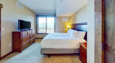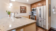 Trailhead Lodge 4103 is a luxurious one-bedroom condo featuring a fully-equipped kitchen complete with granite counters and stainless steel appliances. The living area comes with comfortable furnishings, a cozy gas fireplace, and access to the private balcony. You'll find three flat-screen TVs, a DVD player, and free WiFi for your enjoyment. There is also a washer and dryer in the condo (detergent provided) for your convenience. The master bedroom features a king bed and an attached bathroom with double vanity. There is also a queen sleeper in the living area for extra accommodations. More...