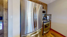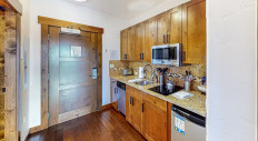 Trailhead Lodge is a high-end, modern condominium complex with convenient access to the Wildhorse Gondola throughout the ski season. This Penthouse top floor unit is a one of a kind, Studio condo with one bathroom, that can sleep up to four guests. The unit was just updated in 2019 and features a new king size bed, as well as, a new queen size leather sofa sleeper. The unit also features a new dramatic antler chandelier, new Thomas Mangelsen artwork, and a brand new Sony 55 inch flat screen T. V. The studio has been designed and decorated for those who enjoy a modernized vacation experience ? it boasts rare high vaulted ceilings, beautiful wooden flooring, and stainless steel kitchen appliances. The studio is unique in a number of ways. Inside you'll notice a kitchenette in a separate, private space away from the living area. It includes a mini-fridge, microwave, dishwasher, and a stovetop. A perfectly sized dining table for two is located nearby. The elegant king bed and queen sofa sleeper face a 55? flat screen TV, which sits above a stone fireplace. If you choose to raise the shades as you start out your day, an abundance of natural light floods in from the private balcony windows. Step outside and take in lovely Rocky Mountain views in the distance from this Top Floor balcony with a dramatic high covered deck. At Trailhead Lodge you will have access to numerous on-site amenities. This includes a large pool, 3 hot tubs, fitness center, game room, an outdoor fire-pit, a Bar-B-Que area, central air-conditioning, a deluxe boot-drying facility, and access to the Wildhorse Gondola which takes guests from the property up to Gondola Square. You area also invited to utilize out winter shuttle services for shopping, dining and other area activities. More...