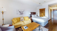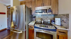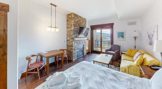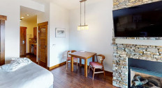 Trailhead Lodge 2113 is a luxurious studio condo, perfect for a small family vacation. The unit features a kitchenette complete with mini-fridge, granite counters and stainless steel appliances. There is a stove, microwave and dishwasher, but no oven. The living area features comfortable furnishings, a cozy gas fireplace and access to a private balcony. For entertainment, the unit has a flat screen TV, a DVD player and complimentary WiFi for your enjoyment. Additional amenities include an in unit washer and dryer (detergent provided) and heated garage parking for your convenience. For sleeping options, the unit features a queen bed and a queen Sleeper sofa. There is a full bathroom with shower/tub combo Amenities include a large pool, 3 hot tubs, fitness center, game room, an outdoor fire-pit, a Bar-B-Que area, central air-conditioning, a deluxe boot-drying facility, access to the Wildhorse Gondola which takes guests from the property up to Gondola Square and out winter shuttle services to take guests to shopping, dining and other area activities. More...