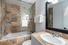 This lock-off has a king bed that can be split into 2 twins, TV and bathroom in the hallway with shower/tub combo.