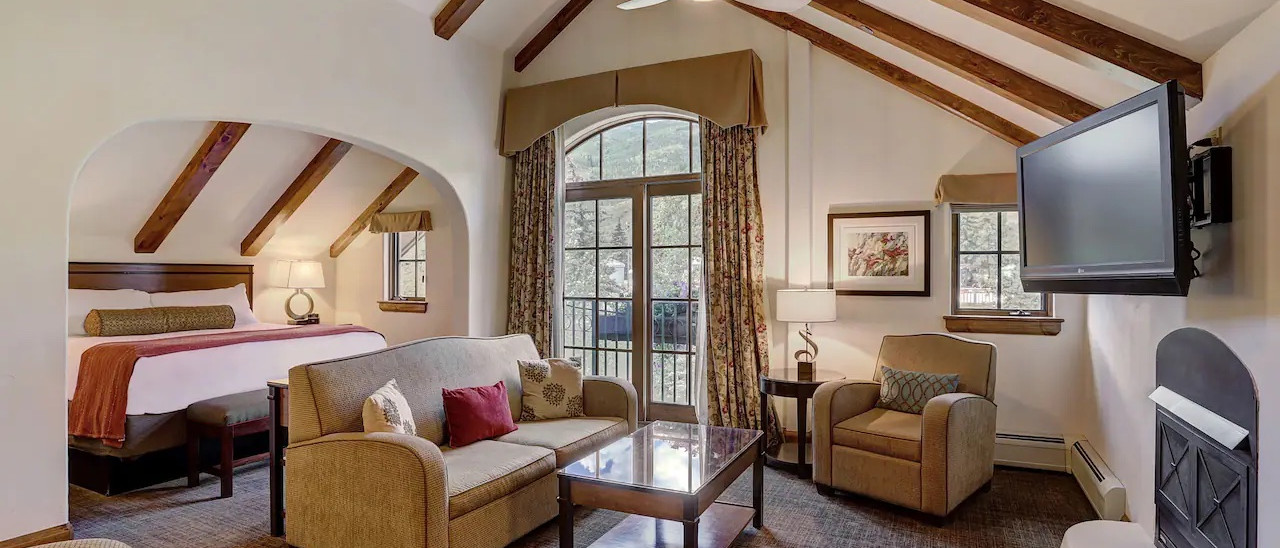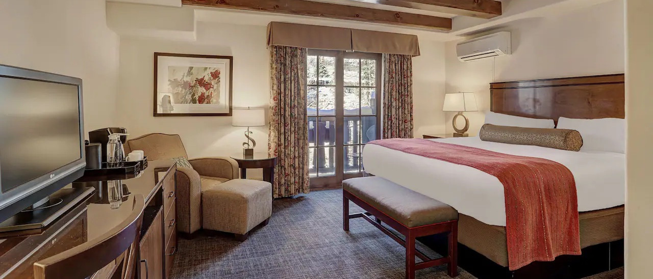 The graciously appointed accommodations include 25 valley-view guestrooms and suites, each reflecting a sense of mountain elegance and comfort. All feature natural-wood, hand-troweled, plaster walls; coffered ceilings with antique brass fans; custom-designed furniture, fabrics, and artwork in warm earth tones; bathrooms with heated marble floors, large vanities, and cosmetic lighting; and complimentary wireless DSL Internet access. Some guestrooms also offer gas-log fireplaces, step-out or French balconies, and/or air-conditioning.