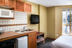 Discover the fun, excitement, and beauty of Whistler at this charming, open-plan studio for two located within walking distance of skiing, shopping, dining, and so much more. Prepare quick meals or mugs of hot chocolate in your kitchenette, and then kick back and watch your favorite shows and movies on the flatscreen TV. After exciting days on the slopes, drop your gear off at the complimentary ski valet in the lobby and head straight out to the shared, heated pool and the outdoor hot tubs to soak those tired muscles. Additional features include saunas, a fitness room, secure parking, and bicycle storage. More...