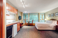 Experience all that Whistler has to offer at this charming studio for two located within walking distance of skiing, shopping, dining, and more. With the well-equipped kitchenette, you can prepare quick meals or mugs of hot cocoa, and then kick back and watch your favorite shows and movies on the flatscreen TV. After exciting days on the slopes, drop your gear off at the complimentary ski valet in the lobby and head straight out to the shared, heated pool and hot tubs to soak those tired muscles. Additional features include saunas, a fitness room, secure parking, and bicycle storage. More...