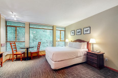 Escape to Whistler at this warm and welcoming, ground-floor getaway located just minutes from the Village's most popular attractions and restaurants. The well-equipped kitchenette comes with everything you need to prepare meals at home or heat up last night's leftovers. Dine at the table for two and enjoy the mountain views, or channel surf on the wall-mounted flatscreen TV from the comfort of your cozy bed. Guests will also enjoy access to a variety of on-site amenities including a shared, outdoor pool, pool spas, and a fitness room. More...