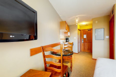 Escape to Whistler at this warm and welcoming, second-floor getaway located just minutes from the Village's most popular attractions and restaurants. The well-equipped kitchenette comes with everything you need to prepare meals at home or heat up last night's leftovers. Dine at the table for two or lay back and channel surf on the wall-mounted flatscreen TV from the comfort of your cozy bed. Guests will also enjoy access to a variety of on-site amenities including a shared, heated pool, hot tubs, saunas, and a fitness room. More...