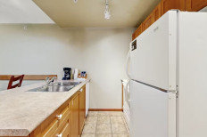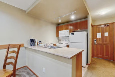 This simple condo is ideal for guests seeking a retreat with mountain views and not a lot of fuss. Vintage style ski photography decorates this condo, setting the tone for what will probably be a long day of exploring the mountain. Use the minifridge to store take-out from local businesses or après ski refreshments. The private washer/dryer will help with keeping gear and coats in top shape. Central AC keeps everyone comfortable - it's not easy enjoying a mountain view this lovely! More...