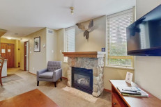 This comfortable condo is a perfect fit for small families or couples looking to escape to the mountains for a while. Prepare anything from your morning coffee to full-course meals in the well-equipped kitchen and then dine together or play board games at the adjacent table for four. Warm up by the gas fireplace and watch movies or your favorite TV shows in the living area, and then step outside onto your private balcony offering forest and mountain views. Guests will also enjoy access to deluxe, on-site amenities like a shared, heated pool, hot tubs, saunas, and a fitness room. More...