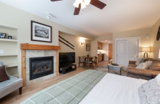 Fraser Crossing studio 3318 is beautifully decorated in chic mountain contemporary furnishings. Enjoy the efficiency kitchen to enjoy meals at home and a cozy fireplace to snuggle up with a hot chocolate. There is a king size bed and full bathroom with tub and shower, as well as a sofa sleeper in the living room.