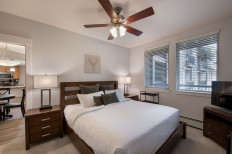Perfect ground level location for your mountain vacation. The condo is located immediately off the garage level, so easy access for unloading the gear, as well as walk out the front door to the Village just steps across the street. The sleeping arrangements are a king bed in the master bedroom with ensuite bathroom, a queen bed and twin futon pull out in the second bedroom. There's also a sofa sleeper to pull out in the living area. Enjoy a cup of coffee on the deck while watching the Village happenings during the day.