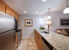 Condominium 3305 contemporary and beautiful one bedroom efficiency located at Fraser Crossing. This condo has a hotel king size bed in the bedroom with a sofa sleeper in the living area. It is most comfortable for two people. Full bathroom with tub and separate shower stall, efficiency kitchen with additional wine fridge in the living area credenza, and patio access to the amenity deck make this condo a special retreat.