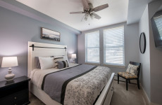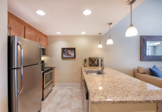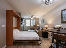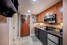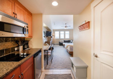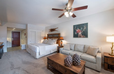 Perfectly appointed Studio in Founders Pointe with luxury vinyl floors, glass cook top, and cozy L-shaped sofa sleeper best for one person alongside the king size bed. Ideal for a couple's getaway!