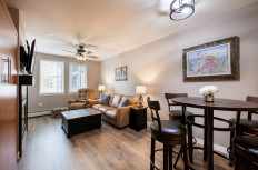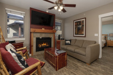 Cozy two bedroom condominium with oversize sofa to sink into at the end of the day and relax in front of the fireplace. The main bedroom has a king size bed with ensuite bathroom and the second bedroom has a queen bed, the living area has a sofa sleeper.