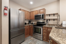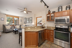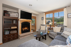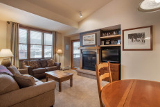 Simple and easy living wait for you in this two bedroom, two bath condominium with granite counter-tops and bar style dining, stainless steel appliances, balcony overlooking the base, and a gas burning fireplace. The condominium is great for the adventure minded visitor who wants easy location and just the right amount of amenities to make a mountain vacation work. The master bedroom has a queen size bed with ensuite bathroom, the second bedroom has a queen size bed, and a sleeper sofa in the living area.