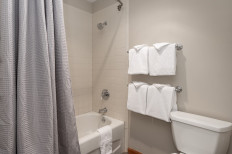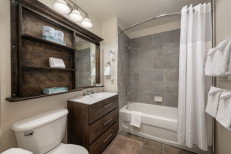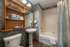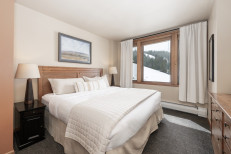 Simple and comfortable, this two bedroom, two bathroom condominium has standard furnishings and faces the slopes and base area for the perfect view from the balcony. The master bedroom has a king size bed and ensuite bathroom, the second bedroom has a queen size bed, and the full size sleeper sofa pulls out in the living area.