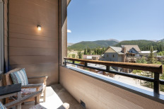 Enjoy watching skiers and bikers descend the trails from this two bedroom two bath condominium on the third floor. Located just one floor up from the hot tubs and Corridor Ski Trail, this condominium has been recently remodeled to include new flooring, granite counter top with bar style seating and personal touches in the decor. The master bedroom has a king size bed and ensuite bathroom with a roll-in shower, the second bedroom has two twin beds, and a sleeper sofa in the living area.