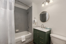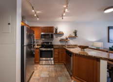Beautiful one bedroom condo overlooking the Gondola and The Village Plaza. This condo features a modern bathroom with a copper vanity, sink, and mirror in the bedroom providing extra room to get ready for the day. New cabinets, contemporary track lighting through the kitchen and living area, and a leather sofa and arm chair, make this condo a must stay for comfort and convenience to all that is going on at the base. The master bedroom is spacious with a king bed, work desk, vanity sink, and extra closet space. Along with the sofa sleeper in the living area, this condo will comfortably sleep 2-4 people.