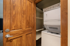 Lovely two bedroom two bathroom condominium on the top floor of the Riverside building. This condominium is unique in offering a washer/dryer unit with utility closet. Enjoy the king bed in the master bedroom with skylights and ensuite bathroom, and a second bedroom with a twin over queen bunk bed. The living area has beautiful views of the Continental Divide. No balcony or sofa sleeper in this unit.