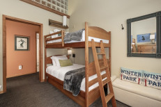 Cozy two bedroom two bathroom condominium at Zephyr Mountain Lodge Slopeside, perfect for a family with children as it has a bunk bedroom with a Twin over Full in one bedroom, a full size sofa pull out, and a King in the primary bedroom with ensuite bathroom. Enjoy your mountain stay overlooking the Village pond and Continental Divide while having a full kitchen to prepare meals and dine in at the high-top counter!