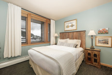 Simple and comfortable, this two bedroom, two bathroom condominium has standard furnishings and looks towards the Continental Divide and Village area. The master bedroom has a king size bed and ensuite bathroom, the second bedroom has a queen size bed, and there's a full size sleeper sofa pulls out in the living area.